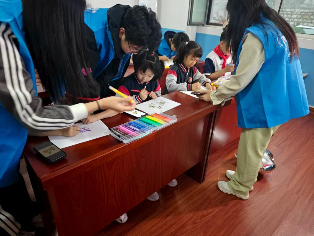 随后,“绘画潜水艇”手工环节,7名志愿者一对一引导孩子们发挥想象进行创作,并在过程中融入科技知识讲解,寓教于乐。
