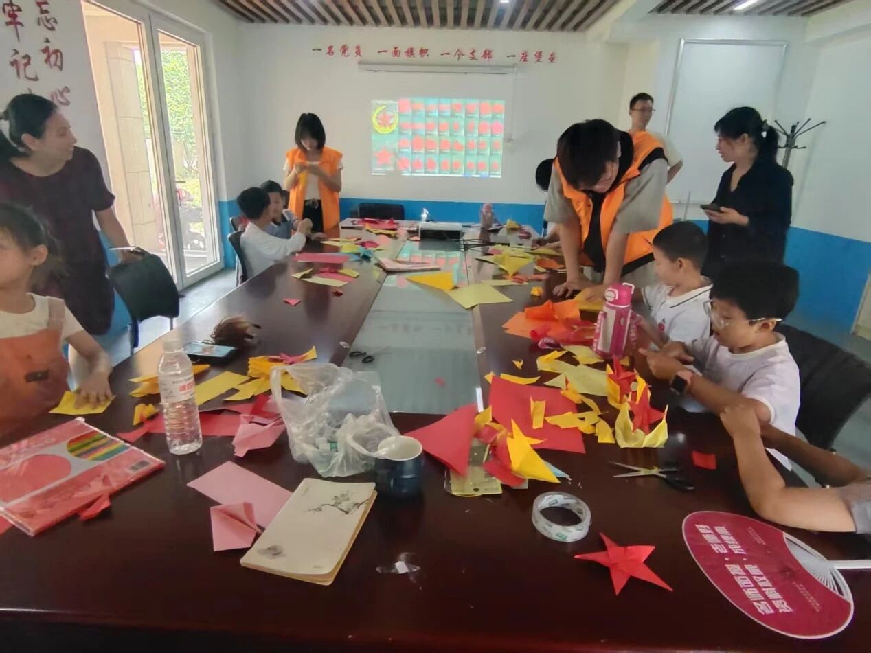 在创意手工环节,志愿者帮助小朋友用折纸完成立体五角星、和平鸽、手工军舰、小红旗等作品的制作,让孩子们充分发挥动手能力。小小的折纸作品不仅承载着孩子们满满的成就感,更寄托了孩子们对美好生活的向往。