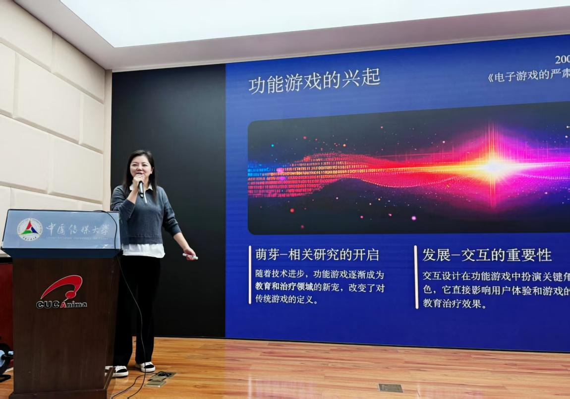 张牧老师则以《功能游戏的介入——交互艺术的价值重构与机制创新研究》为题发表演讲,从交互艺术视角出发,剖析功能游戏介入社会、文化等领域过程中,其价值重构与机制创新的路径,为功能游戏的多元发展提供了学术洞见。