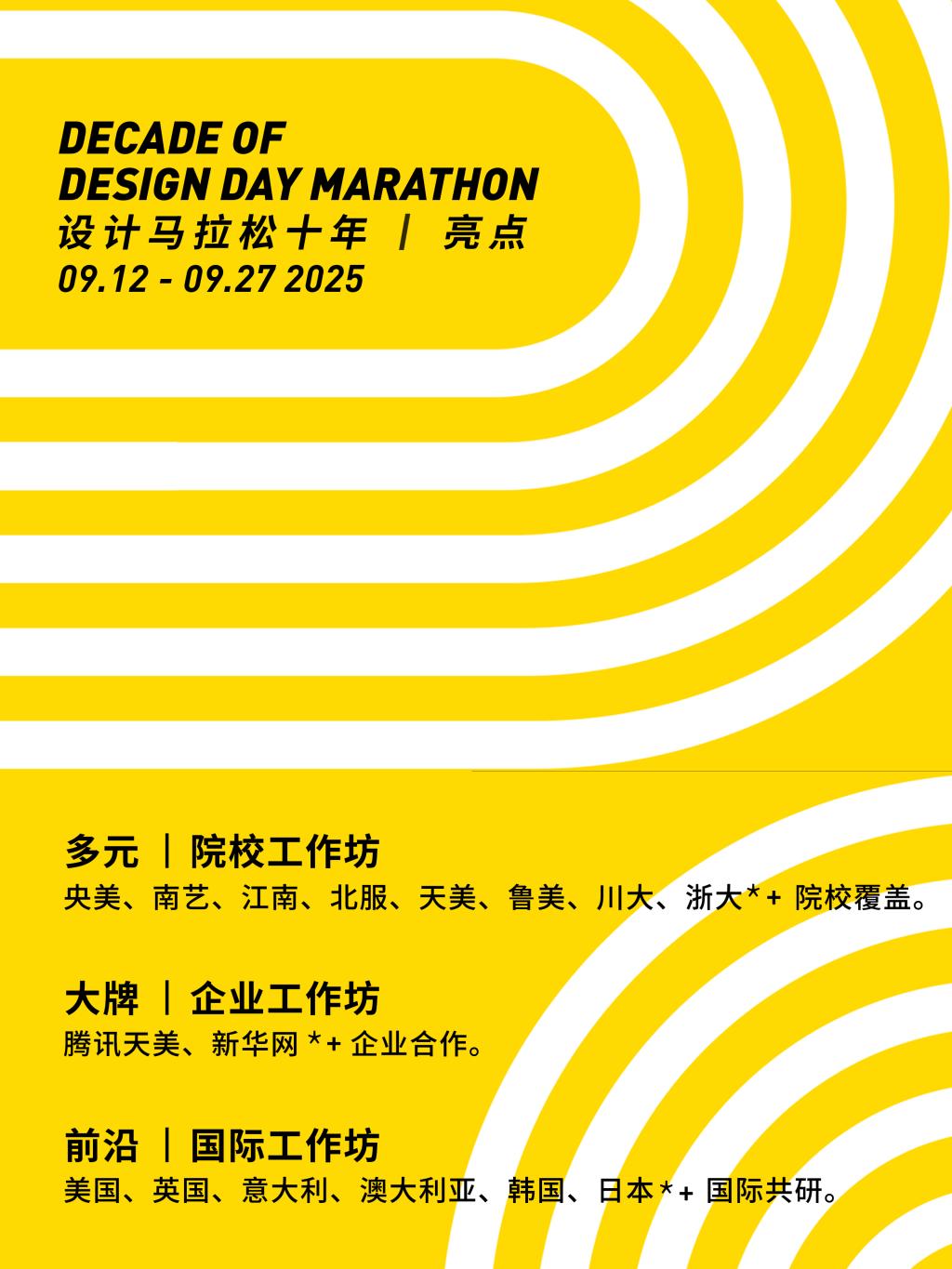 2025设计马拉松以“文脉传承下的新质生产力”为主题,在举办十年之际焕发出全新活力。历经十年的积累与发展,设计马拉松已从一个学术工作坊成长为一个具有全球影响力的设计创新平台。以高强度、跨学科、国际化著称,不同于传统设计竞赛,它采用独特的"工作坊+竞赛"双轨模式,既是一个深度学习的教育项目,也是一个真枪实弹的创新挑战。赛事面向全球设计院校师生和年轻设计师,要求参与者在有限时间内完成从调研、创意到方案落地的完整设计流程。十年间,吸引了来自全球30余个国家和地区的400余所高校与企业参与,输出了无数优秀的创意方案,见证了全球设计教育与实践的融合与演进。工作坊平台为各类文化、艺术等相关项目的实践与共建提供了有力推动,促进了产业与学术之间的共赢,同时为企业和机构解决了棘手的设计问题,构建了学术与产业深度融合的合作平台。