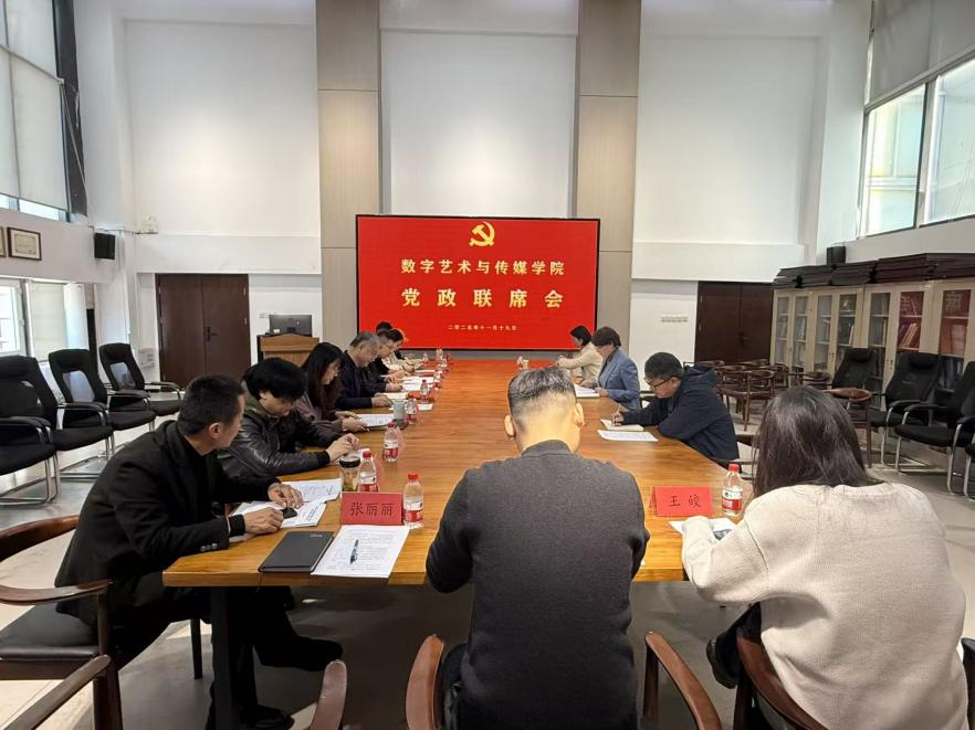 数字艺术与传媒学院党总支书记李清华、院长吴向阳分别主持召开了学院党总支委员会、党总支理论学习中心组集体学习会和党政联席会。党总支委员会严格落实“第一议题”制度,集中学习习近平总书记关于意识形态工作的重要论述,并审议了《数字艺术与传媒学院校内展览(展映)意识形态审核工作落实方案》。党政联席会上传达了学校2025年科研绩效调度推进会精神,专题讨论了《关于数字艺术与传媒学院进一步加强科研生态化高质量发展的意见》。在理论学习中心组集体学习会上,采用集体学习与视频学习相结合的方式,与会人员深入学习了《中共中央关于制定国民经济和社会发展第十五个五年规划的建议》中有关教育的内容,王华玲、张丽丽两位同志结合学习内容和工作实际作了交流发言,李清华对学习情况作总结发言。