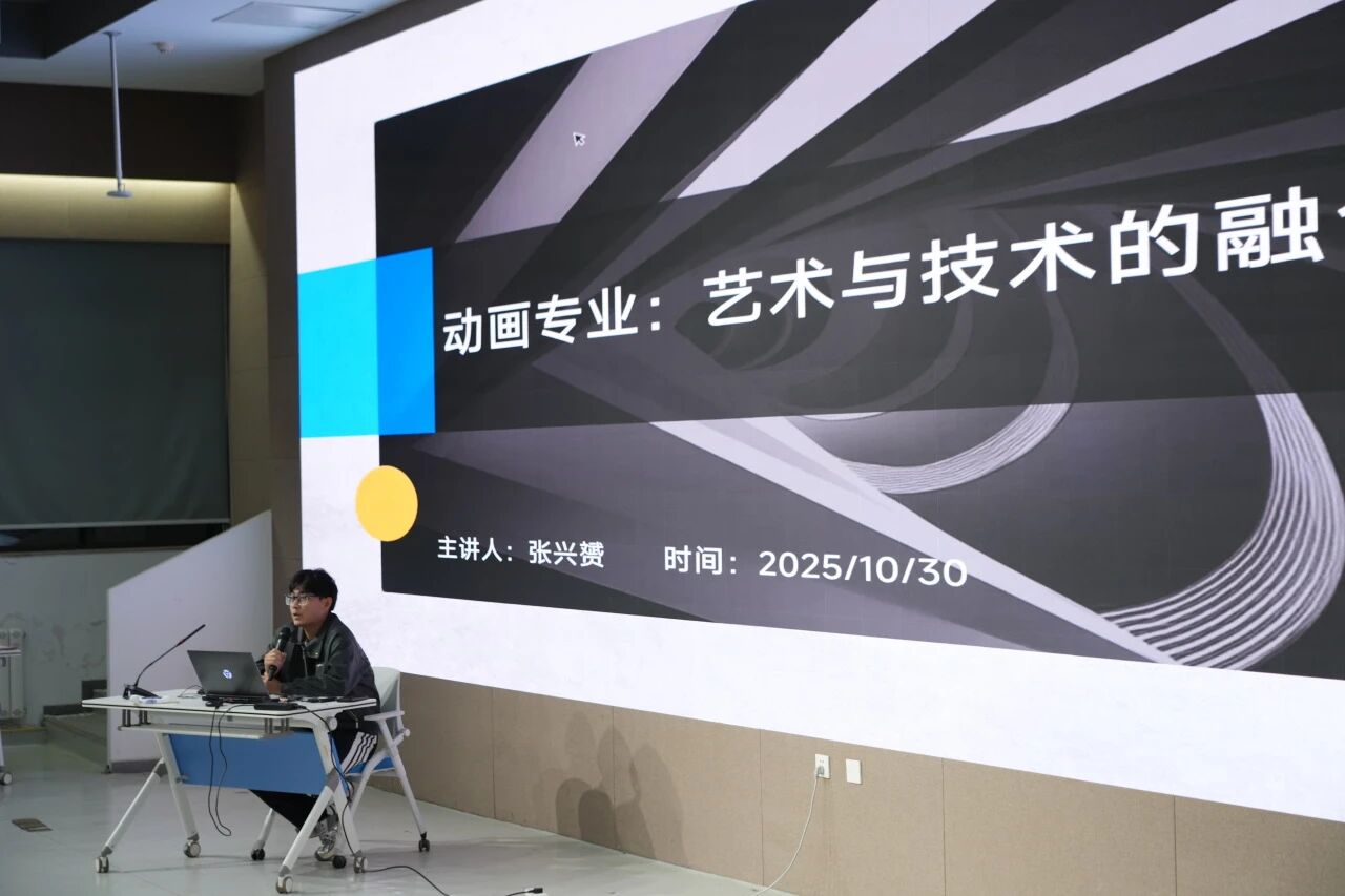 讲座现场,气氛热烈,思维的火花在此刻迸发。张兴赟学长毫无保留地分享了他的“独门秘籍”,从最基础的软件操作技巧到复杂的动画运动规律,从如何捕捉灵感碎片构建宏大故事世界,到如何高效完成团队合作项目。他通过展示自己的创作历程和代表作品,将抽象的理论知识化为一个个鲜活生动的案例。在互动环节,同学们踊跃提问,从专业学习的困惑到未来职业的规划,学长均给予了细致而中肯的解答。这一刻,知识的甘泉潺潺流淌,浸润着每一颗求知若渴的心。
