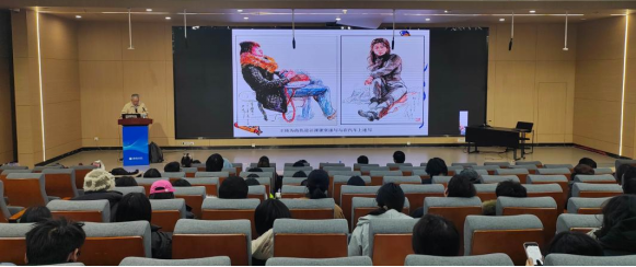 互动环节中,王伟教授针对创作瓶颈、行业前景等问题耐心答疑,并现场进行 “概念速写” 示范,近距离展示创作过程,将现场气氛推向高潮。讲座尾声,动画教研室副主任艾琳老师代表学院致谢,鼓励同学们以王伟教授为榜样,锤炼基本功,提升艺术人文素养,积极应对行业变革。