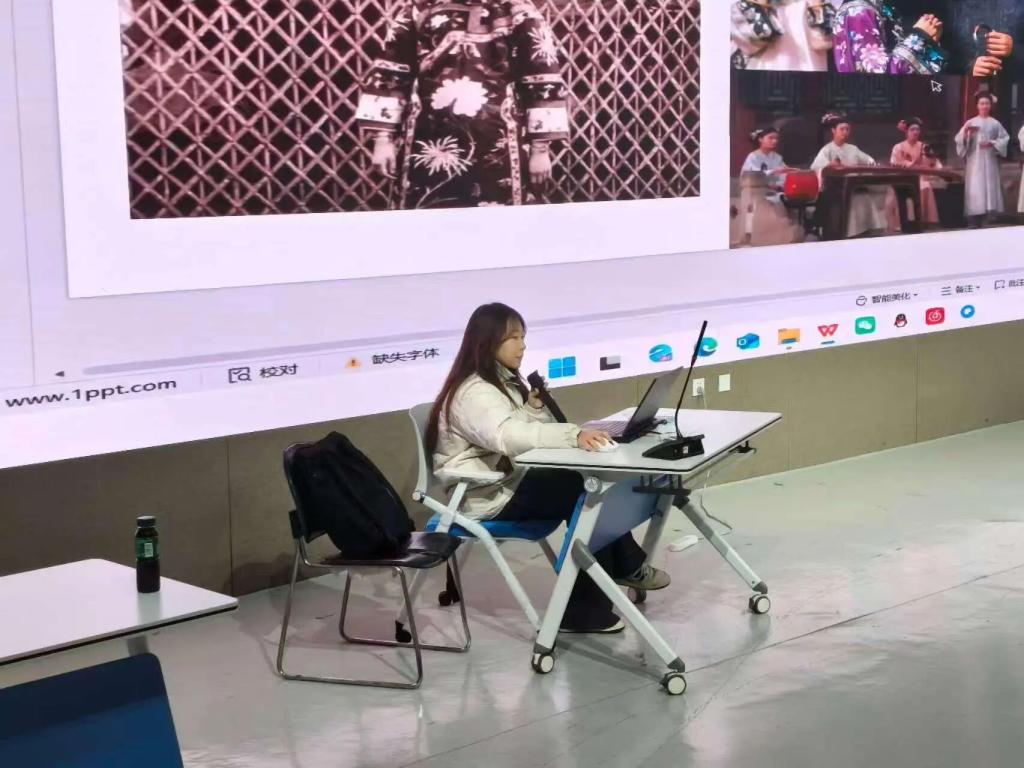 讲座在轻松而热烈的氛围中拉开帷幕。焦萌萌学姐首先以“什么是戏美美术设计”为切入点,结合自身学习成长经历,娓娓道来她与戏美专业结缘的故事,迅速拉近了与在场同学的距离。她提到,从对戏美画面的单纯喜爱,到深入理解其背后严谨的设计逻辑与艺术表现,是一个不断探索和积累的过程,鼓励学弟学妹们要尽早培养专业兴趣,打好扎实基础。