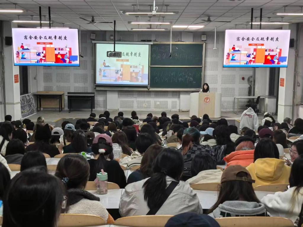 安全无小事,责任记心间。为加强宿舍安全管理,提升新生安全防护意识,10月13日,数字艺术与传媒学院组织2025级新生开展宿舍安全教育。主讲人强调了宿舍安全的重要性,指出违规电器、私拉电线等常见隐患与违纪行为,并详细解读了卫生标准、作息规范及相关管理条例。此次活动切实增强了学生的安全防范意识,为营造安全有序的校园居住环境提供了有力保障。