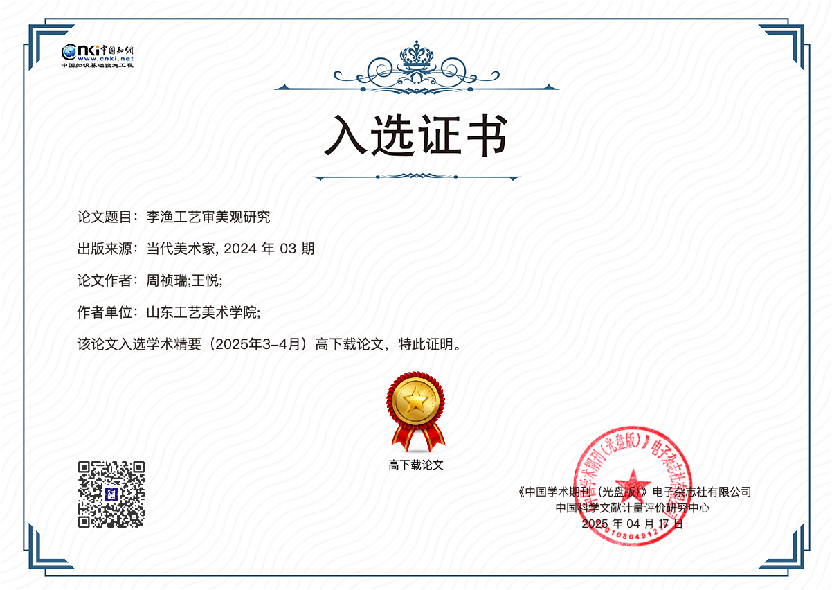 01《李渔工艺审美观研究》获中国知网“高下载论文”