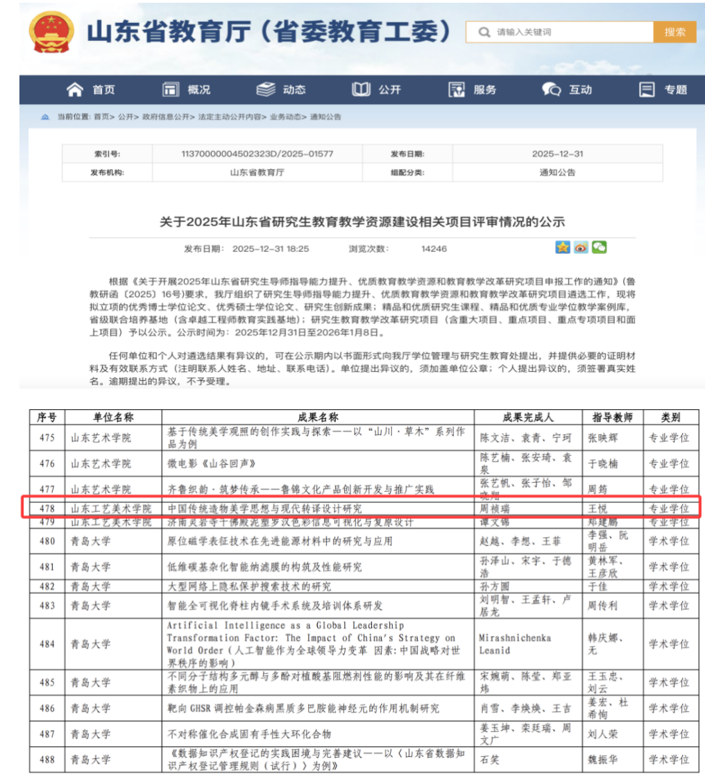 01《中国传统造物美学思想与现代转译设计研究》获山东省研究生创新成果奖