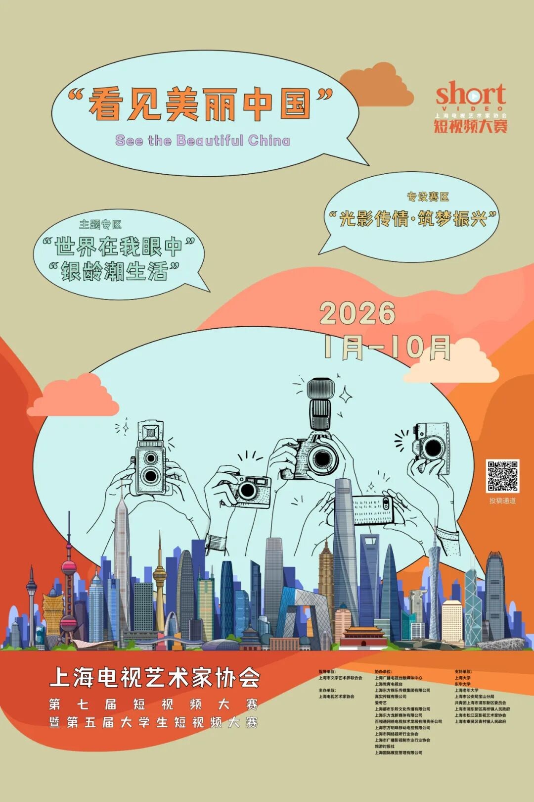 为深入学习宣传贯彻习近平文化思想和党的二十届四中全会精神,充分发挥短视频在构建主流舆论、传播中华文明、展示时代风貌中的独特作用,以实际行动打造文化传承创新发展的上海样本,汇聚中国式现代化新征程的奋进力量,上海电视艺术家协会联合有关单位于2026年1月至10月共同举办“上海电视艺术家协会第七届短视频大赛暨第五届大学生短视频大赛”。