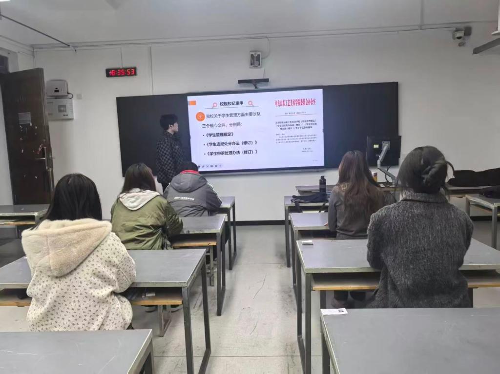 3月8日下午,在学生相继返校后,辅导员第一时间召开了全体班干部会,强调筑牢安全防线、强化学风建设、规范日常管理,班干部需发挥模范带头作用,关注同学身心动态,确保开学各项工作平稳有序。当晚,各班趁热打铁召开了主题班会,传达会议精神的同时,围绕“全国两会专题报道、《山东省学校安全条例》、学风建设、校规校纪重申”四大板块展开学习,为新学期注入满满元气与坚定力量。