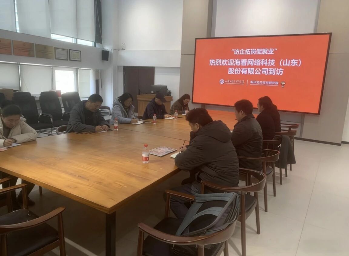 为精准对接行业需求、拓宽人才培养路径,近日,山东工艺美术学院数字艺术与传媒学院院长吴向阳、党总支书记李清华带领相关专业教研室主任及教师代表,与海看网络科技 (山东) 股份有限公司开展访企拓岗交流活动,双方围绕产学研合作、人才共育、项目共创等议题达成多项共识。