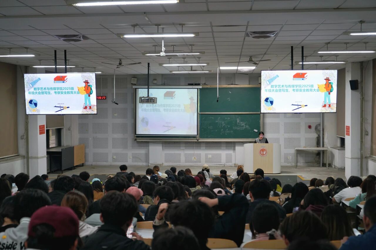 为保障2025级学生写生、考察教学工作安全有序进行,进一步增强学生的安全意识与组织纪律观念,4月9日下午,数字艺术与传媒学院召开2025级年级大会暨写生、考察安全教育大会。会议由2025级辅导员张丽丽、魏浚丞主持,2025级全体同学参加。